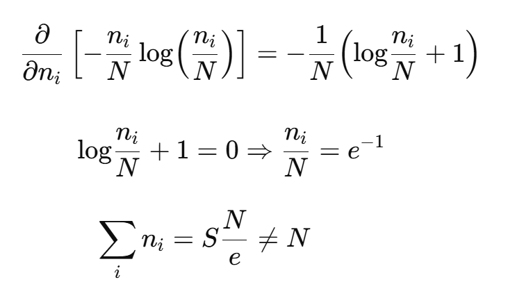 Similarly, the maximum entropy for a perfectly balanced system (where ni mi / N Mm, for all i) is the same as in the unconstrained case: